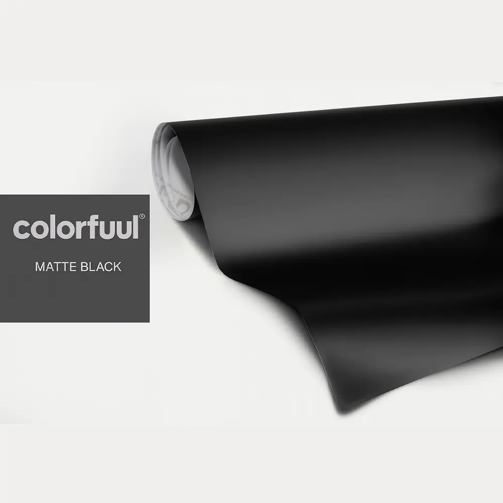Das ColorFuul Black Matte Vinyl Wrap with Air-Release delivers a sleek, stealthy look that never goes out of style. Its deep matte black finish provides a smooth, non-reflective surface that instantly transforms the appearance of any vehicle, Motorrad, or custom project.